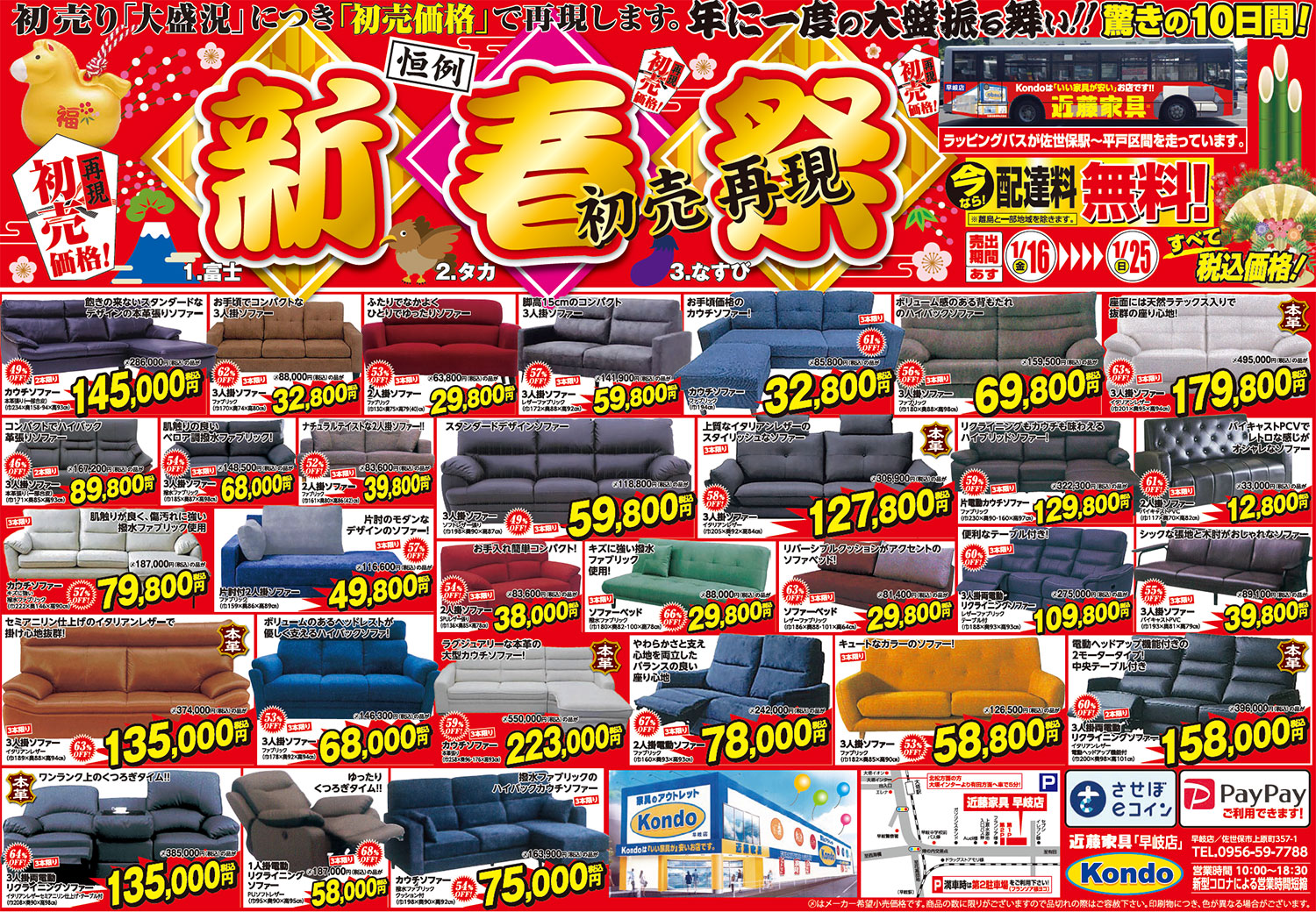 「新春祭」 大好評につき2月1日まで延長いたします! 近藤家具「早岐店」にて開催!!