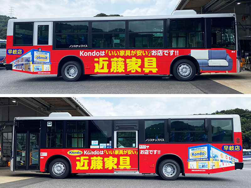 ラッピングバスが佐世保駅~平戸区間を走っています。